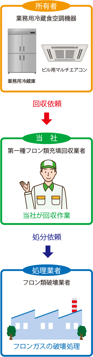 フロンガスの回収・処分の流れ
